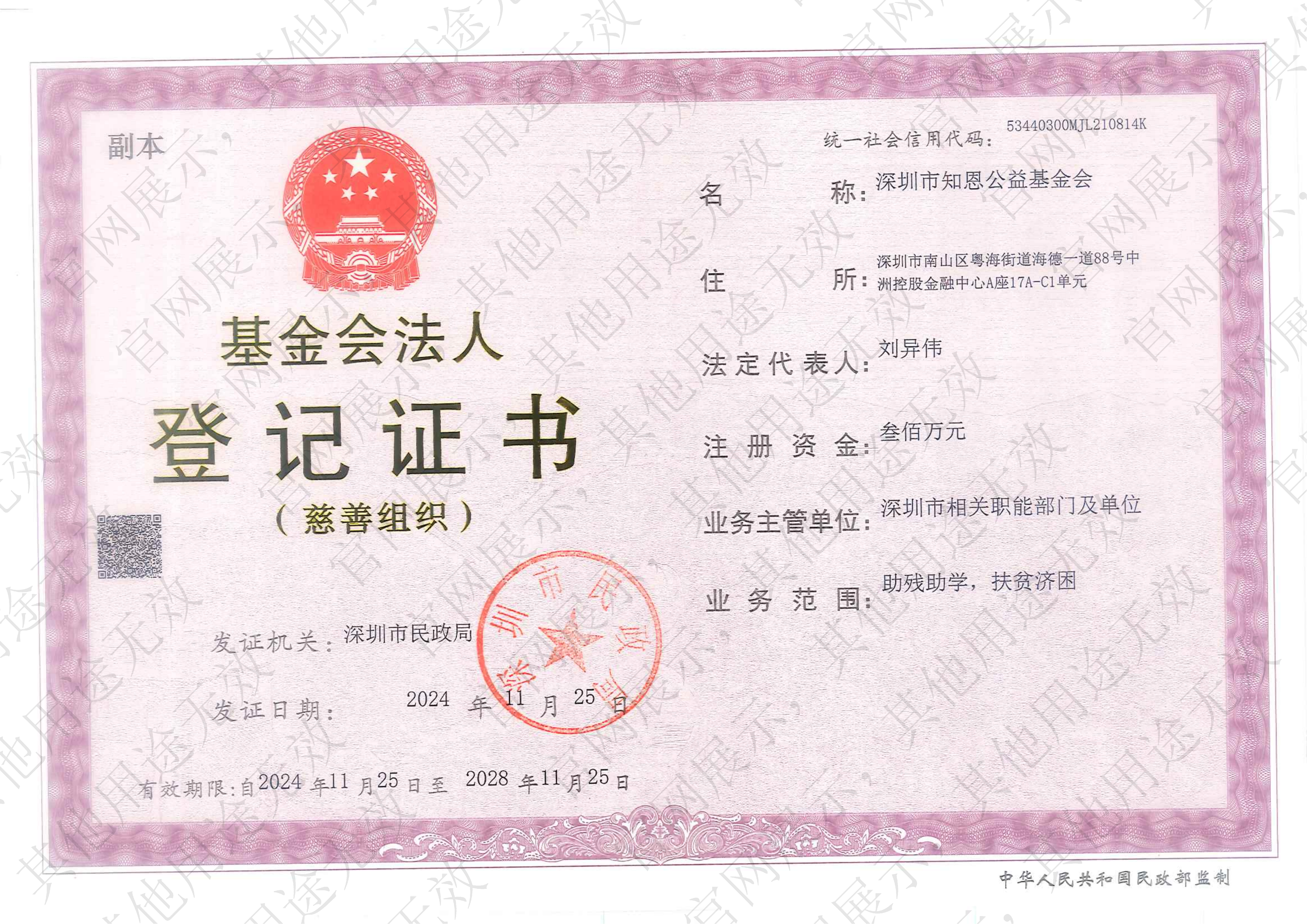 深圳市知恩公益基金会是深圳市民政局批准注册的公益组织,由深圳金融改革先行者创始并与爱心人士共同发起,2022 年8 月22 日获批正式成立。